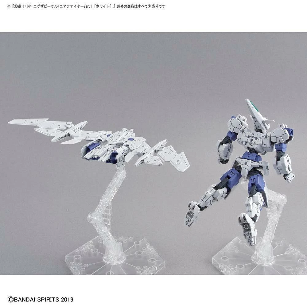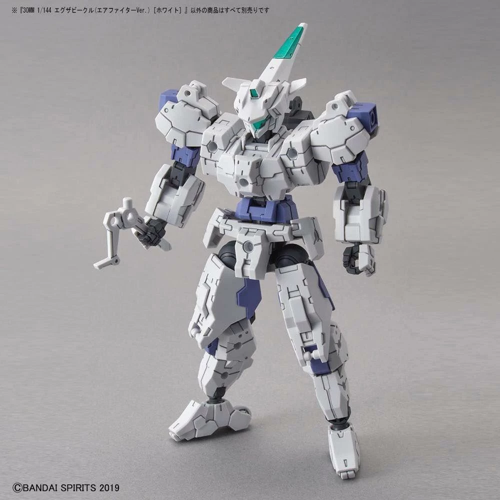 The Extended Armament Vehicle, also known as EXA, model kit series duals as an accessory and a stand alone series of various armed vehicles—all of which can be combined with 30MM models! The EXA air fighter version in white comes with flight pack parts.
