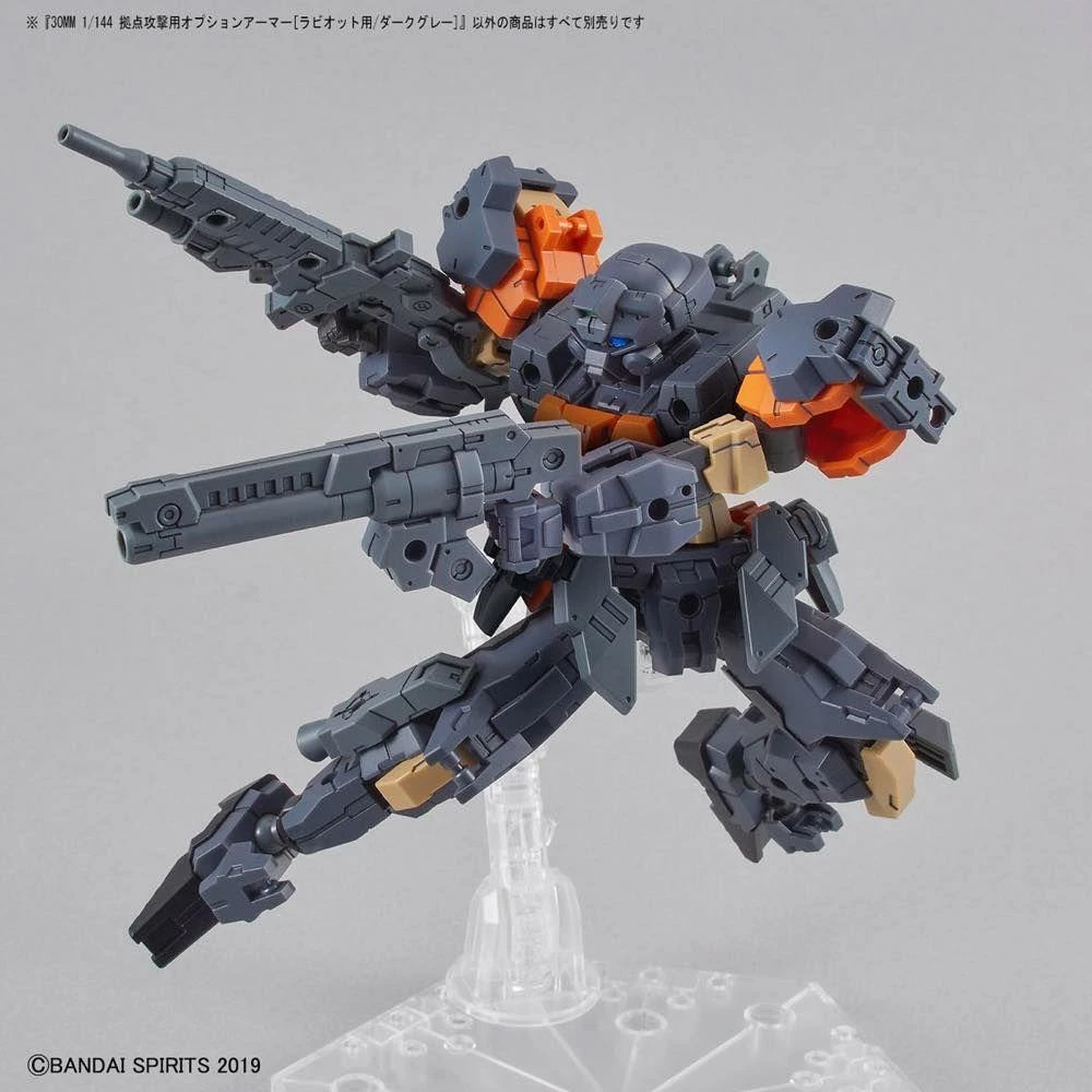Bandai presents Special Operations armor for the 30MM Rabiot in a dark gray color.