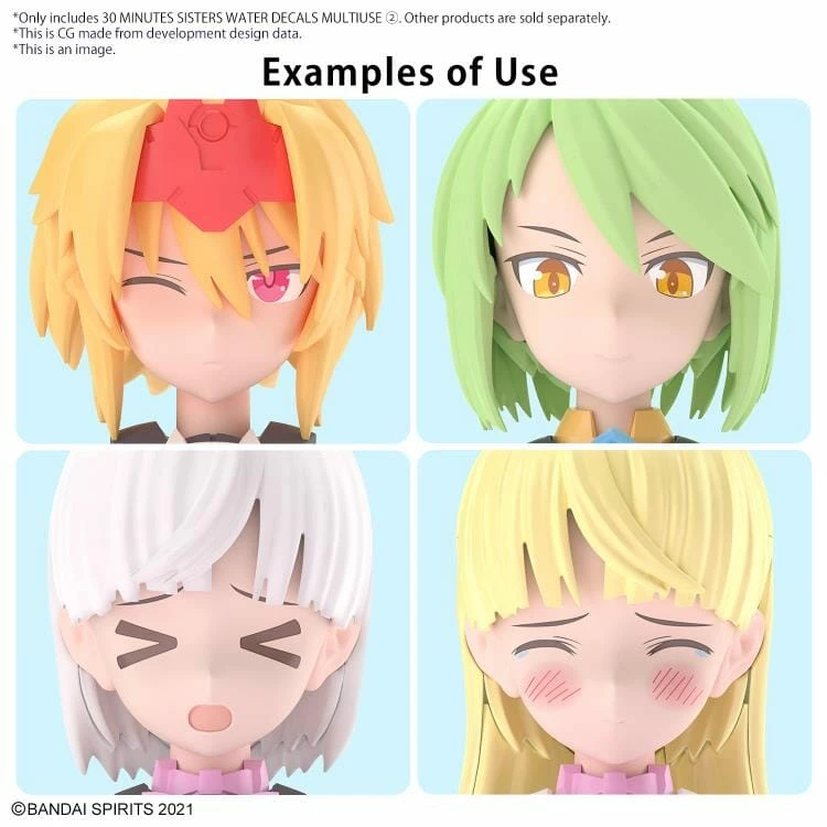 You can make a character of the sister to your liking with various decals that can decorate the face parts of “30 MINUTES SISTERS”. You can use it for the unpainted face parts included in the “30MS Optional Parts” series sold separately to express the expression of the character richly!