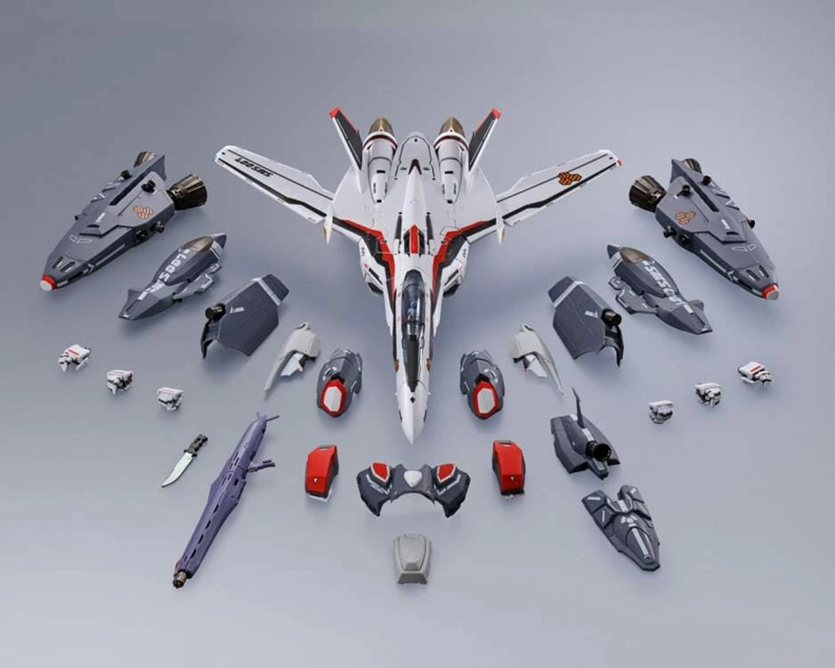 From Macross Frontier, the VF-25F Messiah Valkyrie driven by the main character, Alto Saotome, has been revived as a set with super parts. With a variety of accessories, including a pilot figure for the cockpit as well as an Alto Saotome figure, the DX Chogokin VF-25F Messiah Valkyrie Revival Ver. is sure to please any fan.