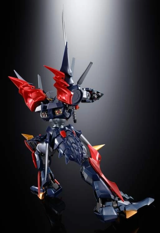 This is a renewed edition of the Soul of Chogokin GX-46 Dygenguar & Aussenseiter set! The incredible transformation is just how you remember it, but the head is newly sculpted and cape is now cloth, which in concert with improved posability and new accessories makes this a seriously powered-up set for fans!