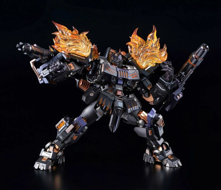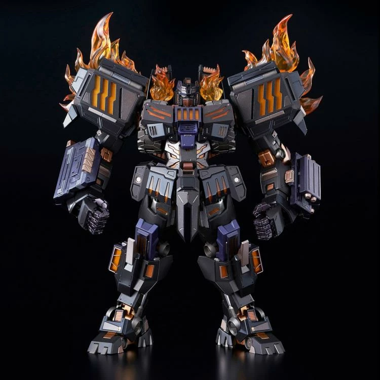 First known as Megatronus Prime, The Fallen joins the Kuro Kara Kuri line up! This figure of the first Decepticon stands around 8 inches tall and is made of iron, PVC, and features LED light-up units in the eyes, chest, shoulders, and legs. This set also includes 2 kinds of cannons that can combine to become his signature Mega Cannon.