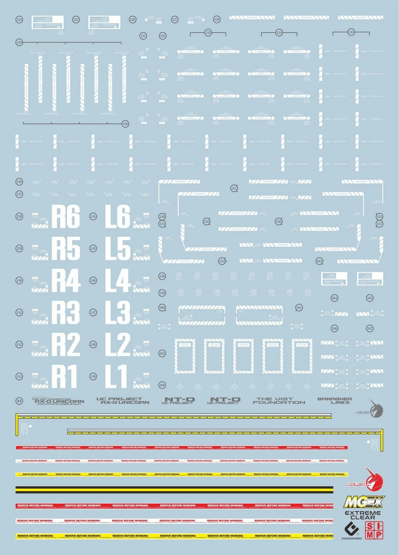 High quality high definition water decal designed for Bandai MGEX Unicorn Gundam (Extreme Clear)
