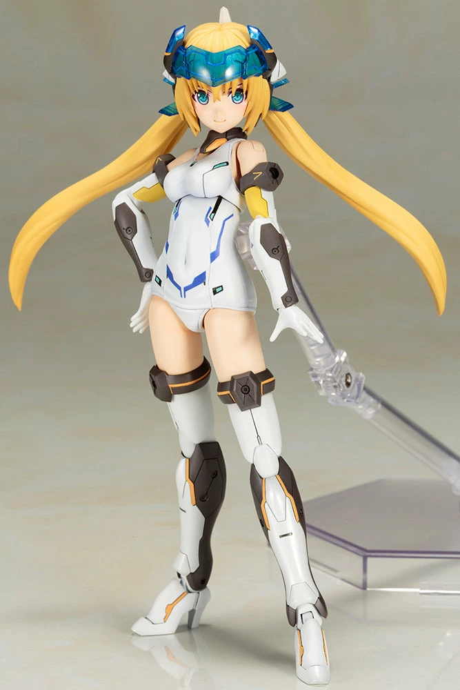 Inspired by the giant of Norse Mythology with the same name, the Ater version still resembles a beautiful young woman and in her new look she retains her striking blue eyes but gets all new long blonde hair. And instead of the purple and gray of the original, this new Hresvelgr wears an eye-popping white bodysuit over which she mounts a matching Frame with dark gray supports and translucent blue accents. The interchangeable parts of her battle-ready armor can be assembled in various ways so you can create your perfect display including cool flying poses, heavily armed combat stances, and more!