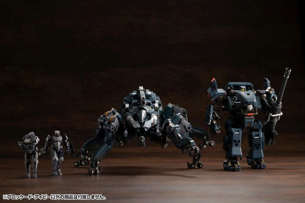 HEXA G-R.A.M System that allows for a wide range of reconfiguration and combination of parts for building original mechas. With its six long legs and heavy body, BLOCKADE IVY is used for long-range shelling with its powerful cannon.