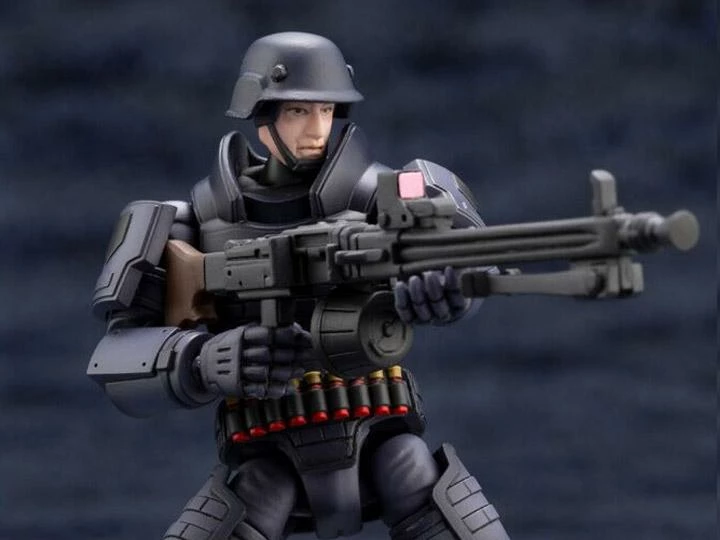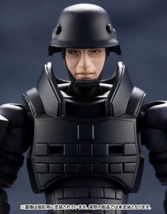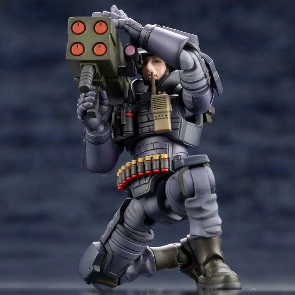 Get ready to customize your ultimate future soldier! This Governor, reflecting one of the earliest types, comes with five different heads with various accessories such as helmets, hats and gas masks! The heads are unpainted so you can paint them as you wish. He also has an incredible 18 interchangeable hands (9 for each side) for all sorts of situations, and is equipped with weapons such as a flamethrower with a poseable hose, a machine gun with a folding bipod, and more!
