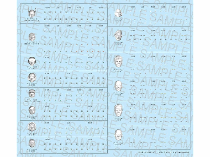 The decals include eyes looking forward, right, and left. There are ones with different colored eyes and brows that users can use freely. Extra decals are also included as spares or for use with multiple models.