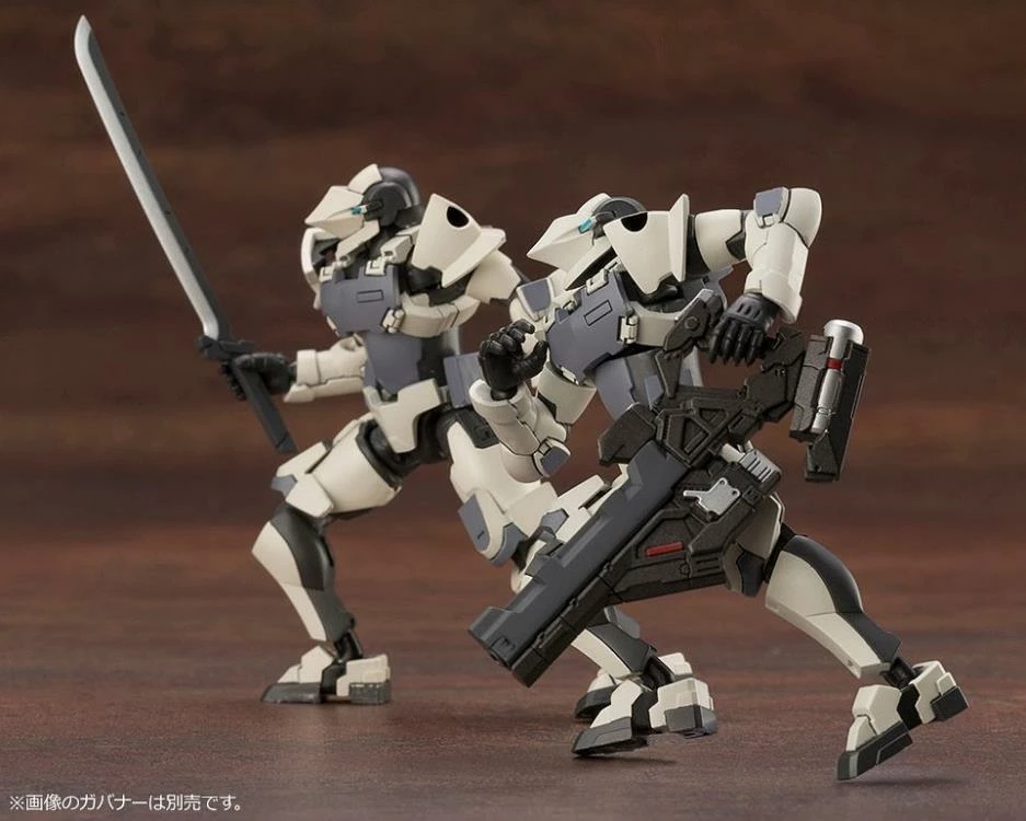 Customize your complete 1/24 scale model kits with this Hexa Gear Governor Weapons Combat Assort 01! The laser rifle can be disassembled into three parts, body scope extension, and barrel extension. The laser rifle pieces and other items in this kit can be combined with the separately sold Weapons Combat Assort 02.