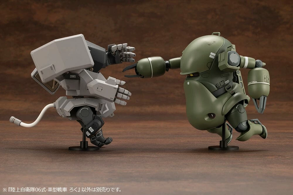 JGSDF Type 06-Ⅲ Tank Roku, a high-spec, full action model from the Nacchin universe, is joining Kotobukiya’s plastic model kit lineup! JGSDF Type 06-Ⅲ Tank Roku is created by the robot designer Moi, who is active on social media. Originally made as a predecessor to Nacchin, Roku comes to life with the latest design specs under the thorough supervision of the designer!
