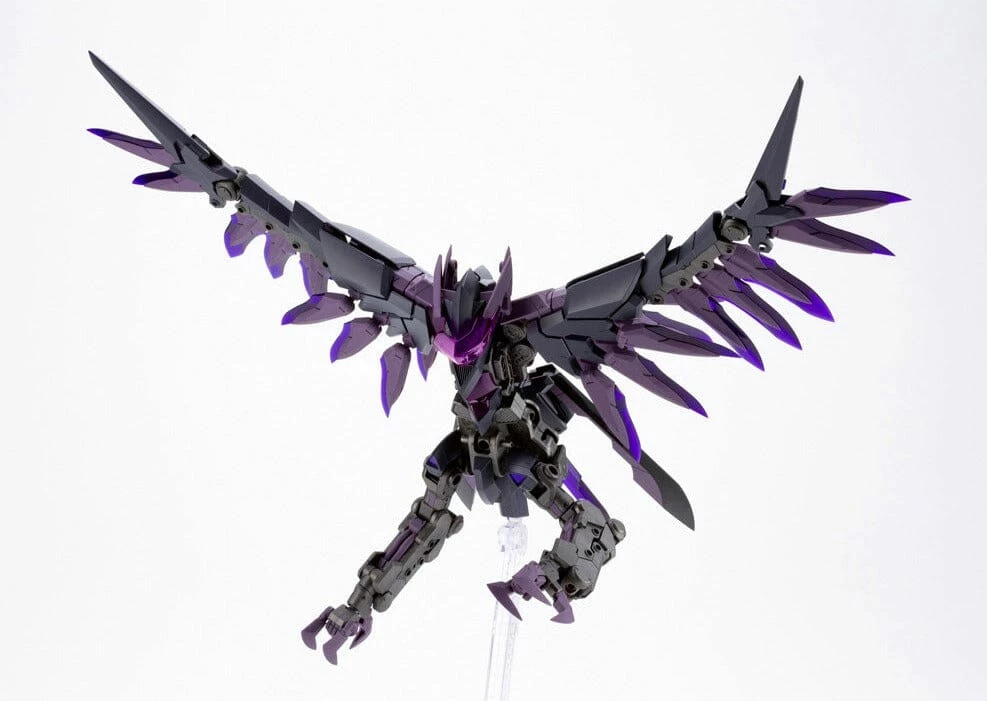 Gigantic Arms 07 Lucifer’s Wing’s Harpy Unit is the next gigantic combination to join the “Gigantic Arms” series! This power suit’s design allows it to be reconfigured into its Beast Mode and Humanoid Mode. The armor parts feature a black and purple color scheme.