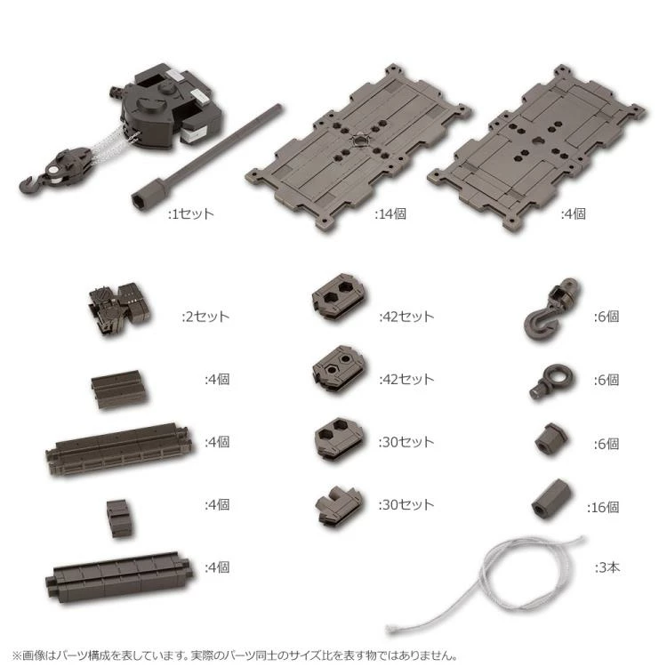 Kotobukiya is proud to present another Block Base that will transform the construction scenes of Hexa Gear! In addition to panel units, this set contains a newly sculpted crane unit, girder unit, and running rail unit. Combined with the included wall and floor base plates, you can create a base or factory with a crane using this kit alone.