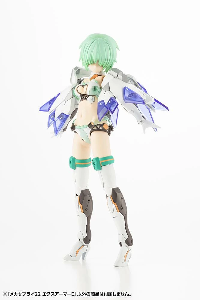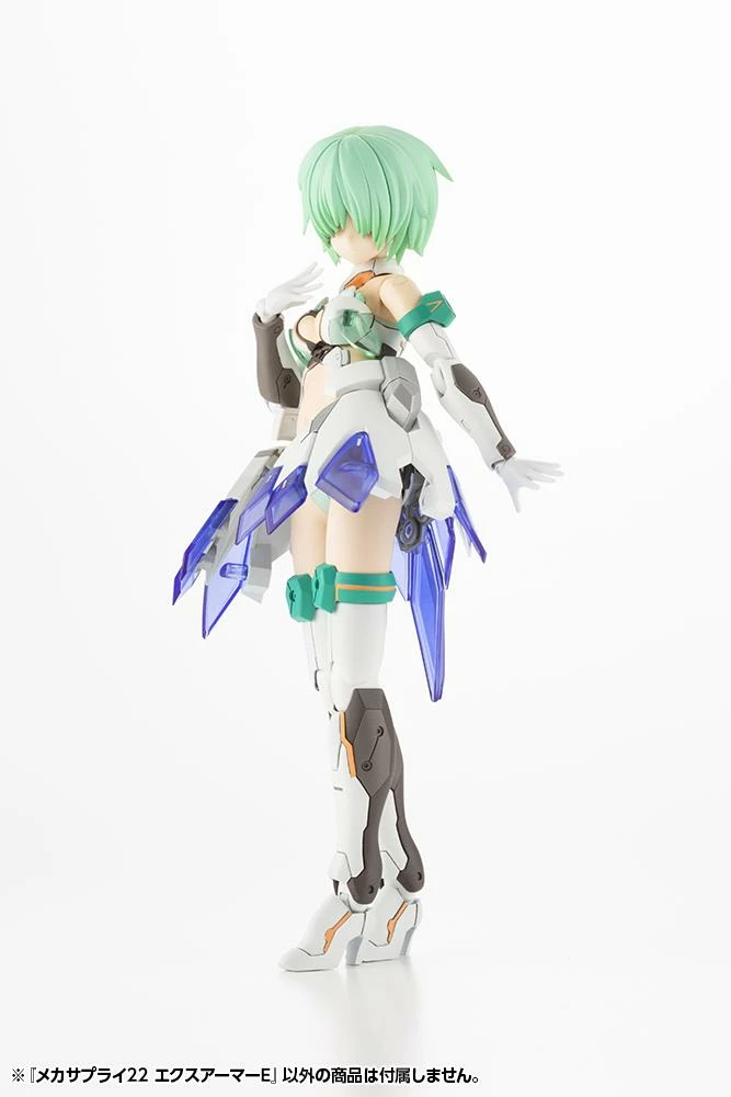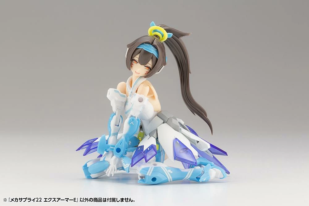 This item fits perfectly with bishoujo-style plastic models such as Frame Arms Girl and Megami Device. By just attaching the armor, the dual-color white and clear blue color sculpt brightens the overall look of any given plastic model. The armor parts use 3mm connections so users can not only just remove each individual armor piece, but can also remove the clearparts and use them separately.