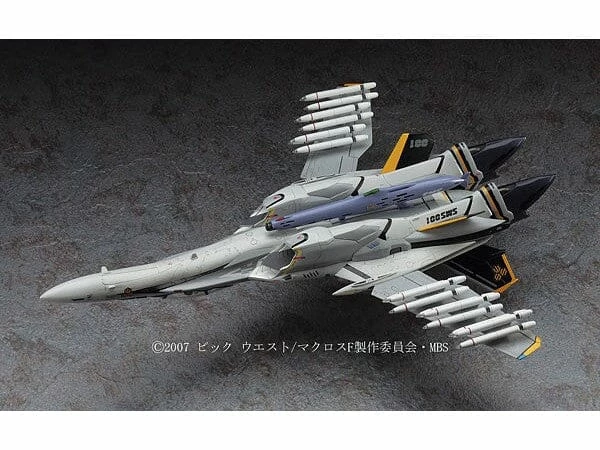 An all-new tooling of the VF-25, that can be built as either the F or S versions! The wings and vector nozzles are movable, the canopy can be posed opened or closed, cockpit can be built as a single or two-seater, and the landing gear can be built up or down. Includes one pilot figure. Molded in white, gray, and clear plastic.Â
