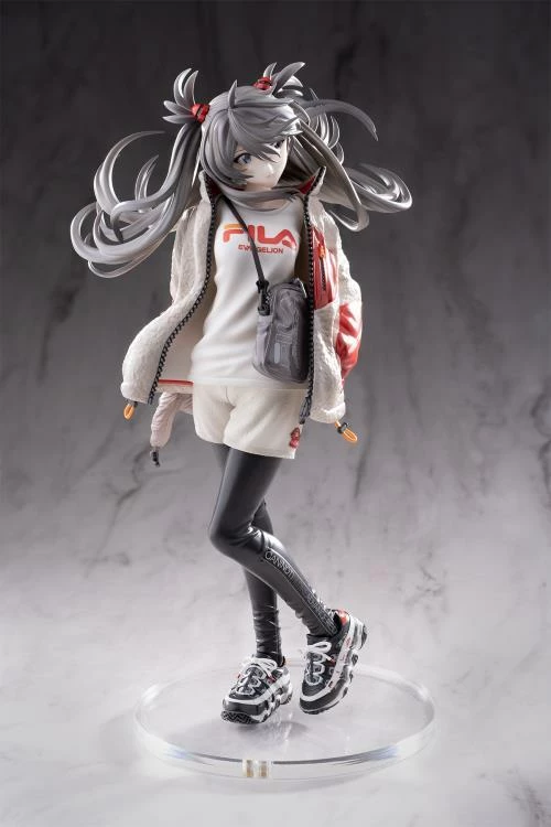 This gorgeous 1/7 scale figure measures almost 10 inches tall and features a beautiful gray, white, and red color scheme with Asuka’s right eye colored blue. She has been sculpted and painted wearing a stylish outfit and holding a matching ushanka-style hat in her right hand.
