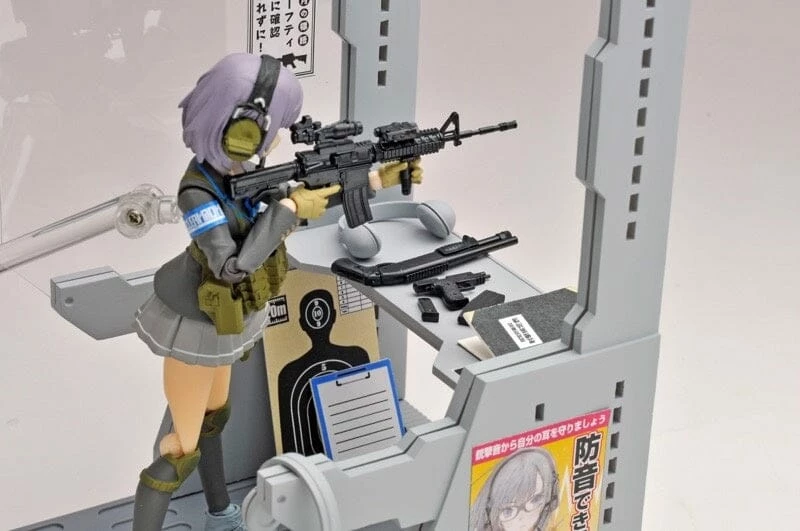 Get your 1/12-scale figures a shooting range for target practice! This setup can be used with the Little Armory weapons and figures, and any 1/12-scale figure who’d like to brush up on their shooting skills. Includes a base, two booth partitions, papercraft targets, ear muffs and more! Measures about 10cm by 10cm by 20cm, and assembly is easy