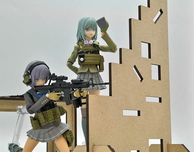 This accessory gives your Little Armory figures (and other 1/12-scale figures) an outdoor shooting range for shooting competitions and tactical training! It features laser-cut MDF parts and PS resin, and includes barricades, a table and chairs, cleaning tools and more!