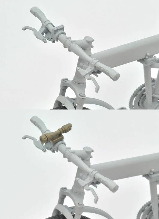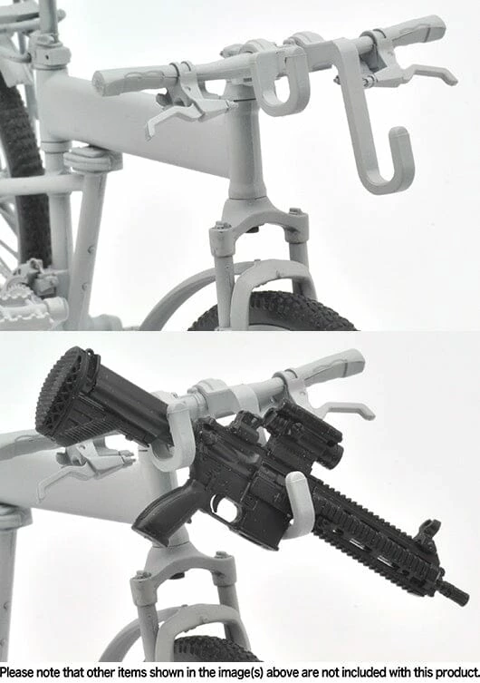 The Little Armory version of the Montague Paratrooper tactical mountain bike is back, this time in a kit version! Molded in gray, it can be painted any way you like, and it has the same detailed reproduction and folding mechanism as the completed version. In addition, this one comes with a gun rack and rails, and waterslide decals for its markings are included. A white wire for reproducing the brake/shift cable and an extra-fine cord are also included as detail-up parts for advanced modelers!